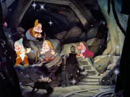 We first meet the dwarfs as they work in their gem mine, singing the movie’s most famous song; “Heigh-Ho”.