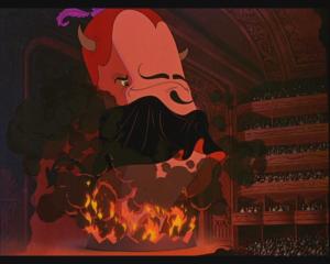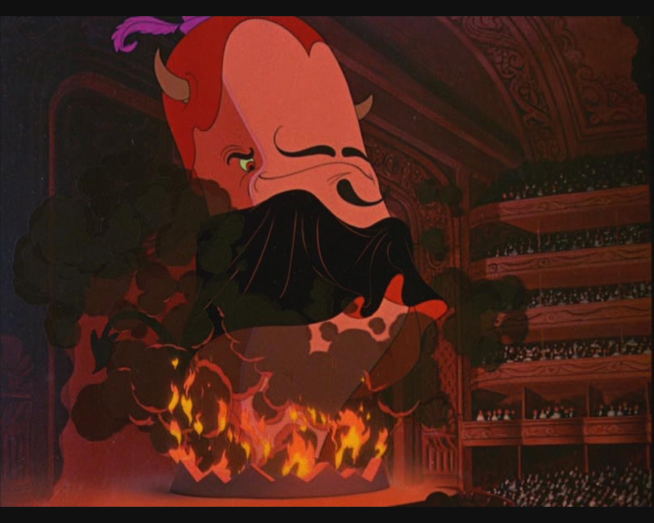 Willie swims up to Tetti-Tatti’s boat and tries to impress him with a brilliant, witty and lively rendition of Largo al Factotum and my God you could do so much worse as an introduction to opera than this cartoon. Eddy is just unreal. Things then move into an extended fantasy sequence where Willie imagines the glorious future that awaits him, singing at the Met in New York. We see and hear him perform excerpts from Lucia di Lammermoor, Pagliacci, Tristan und Isolde (with Eddy playing both parts, natch) and finally Faust.