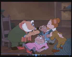 Anyway they get the deed back and the movie ends with Ratty, Mole and McBadger celebrating in Toad Hall. Toad has apparently now cleaned up his act, so the three friends drink a toast to the new year and “the new Toad.” Then there’s a huge crash and they look out the window to see Toad and Cyril flying through the air on his new biplane. Toad waves at them…