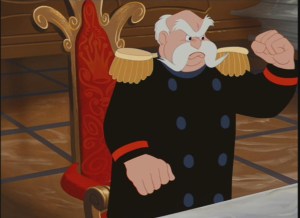 Okay, so having established Cinderella, the mice, Lucifer, the stepmother and the step sisters, the movie now shifts focus to the castle, where we are introduced to the King and his chief lackey the Grand Duke.