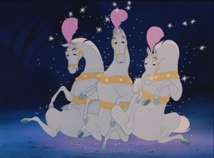 Those Mice took up 60 of the 74 minutes of the movie, frankly, it’s not unreasonable to argue that it was more about them with some Cinderella tossed in on the side. And yes, I did find the high-pitched sped-up voices to be rather annoying, hence why when they were made the horses I wasn’t upset as it kept them silent, leaving Major (the horse) to handle the reins. Okay.