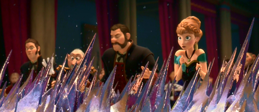 They run downstairs and Elsa uses her magical ice powers to turn the ballroom into a winter wonderland and fuck up the floorboards just forever. Alright, this scene is really important in my eyes because it is utterly, utterly sweet. Disney hasn’t done anything this purely sweet in decades. Now, of course, there’ve been plenty of sweet moments in other more recent movies. But this is old-school Disney sweetness. Almost bordering on saccharine but just on the right side. There is nothing undercutting it. No snark. No eye-eyerolling. Even Tangled, which was on the whole a very sweet movie, had that faint air of Dreamworks sass, a kind of winking at the audience that is completely absent here. I think the reason why this movie connects with so many people is that it is enormously sentimental but utterly sincere about it It feels like the first canon movie in a dog’s age that’s not worried about being uncool. It does not give a solitary fuck if you think it’s sappy or old-fashioned or square. It is completely comfortable in its own identity, which of course is the coolest thing of all.