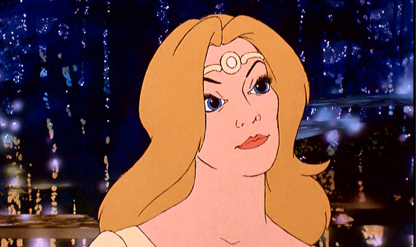 The hobbits and Strider give the riders the slip and when they make camp Aragorn tells them a campside story about an elven princess who forswore immortality to love a human being, at which point Same and Frodo smile and gaze lovingly into each other’s eyes and then cuddle because sweet Eru Ilúvatar if you thought Jackson shipped Sam and Frodo pretty hard you ain’t seen nothing. I wouldn’t be surprised if Bakshi shot a scene of them picking out curtains but had to cut it for time. The riders attack again and stab Frodo with a morgul blade which starts to slowly kill him. As they flee the riders Frodo is seperated from the rest and is chased by the ring wraiths as far as a river in a scene that lasts about as long as an Ancient Egyptian dynasty and is saved when the river suddenly swells and washes the riders away.  On the way, the party also encounters a beautiful Elven princess on a white horse with long blonde hair…