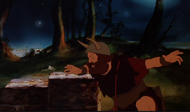 I can respect fidelity to the source material (and if anyone ever decides to do a movie of The Hangman’s Daughter I’ll probably start respecting it a whole lot more) but ultimately I think this was the movie’s undoing. Being faithful to the text is all well and good if you have hundreds of millions of dollars and a New Zealand but if you’re trying to do the story in two moderately budgeted animated features (as was the plan) then you really need to start looking at the story with a gaze of grim determination and a pair of scissors clenched in one hand. Bakshi tried to fit as much of the book as possible into the movie and we’ll see further on the problems that this caused.