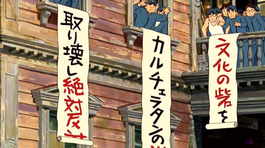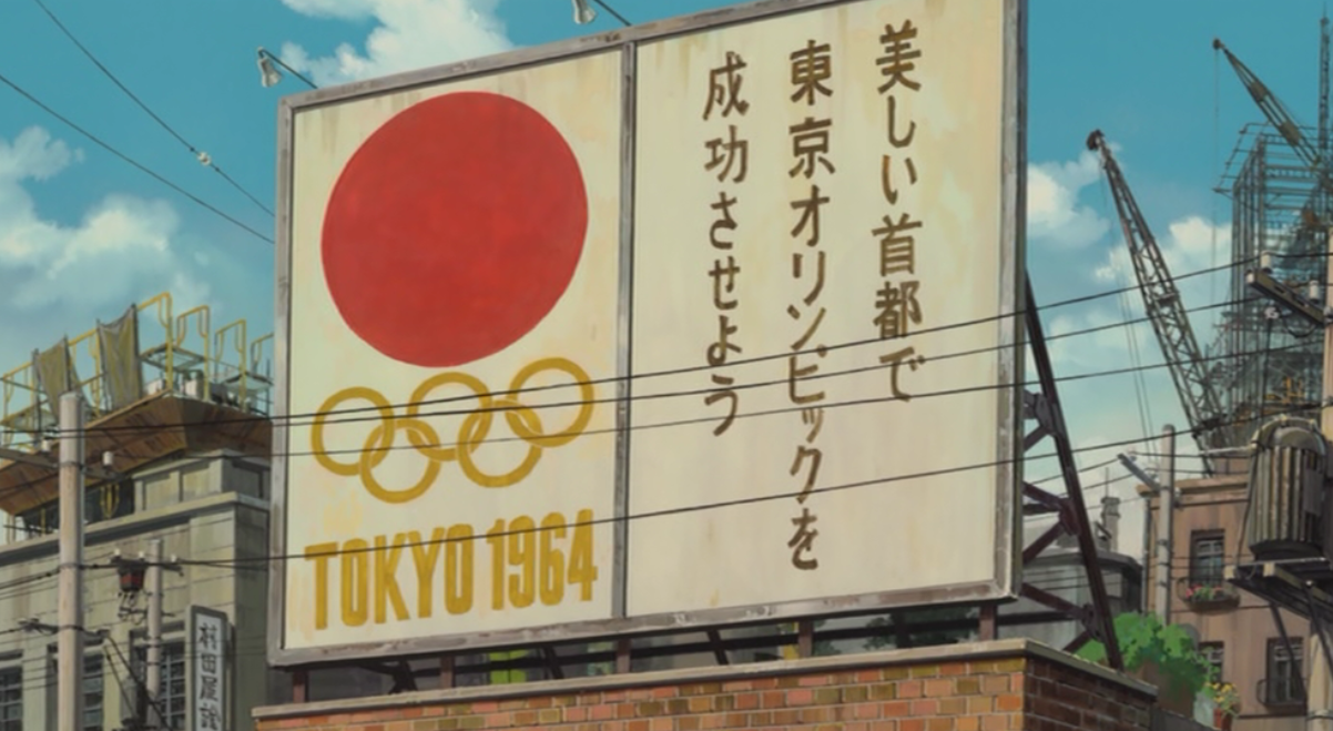Or, because this movie has no sense of fun, Shun, Umi and Mizunama travel to Tokyo to talk to Tokumaru (I just wrote seven T-words in a row and I wasn’t even trying). Tokumaru is the chairman of the school board and they’re hoping they can convince him to cancel the demolition. As they arrive in Tokyo, the city is preparing to host the Olympic Games.