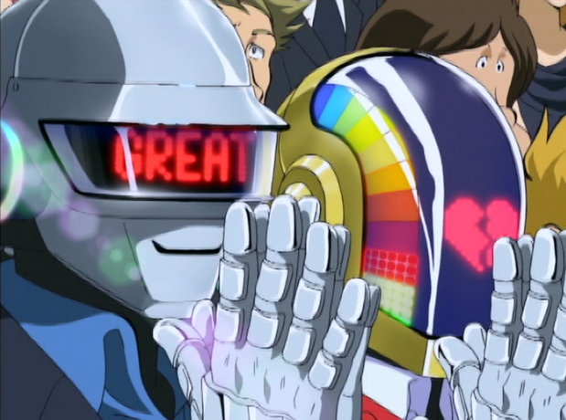 I love Daft Punk. Love love love love love love love them. Discovery is my all time favorite album, “One More Time” and “Digital Love” are two of my all time favorite songs. This movie isn’t great but goddam is it a fun watch if you love Daft Punk. And I don’t know what you’re talking about, Mouse, saying the end of the album is filler, the last two tracks are “Face to Face” and “Too Long” and those are both great!