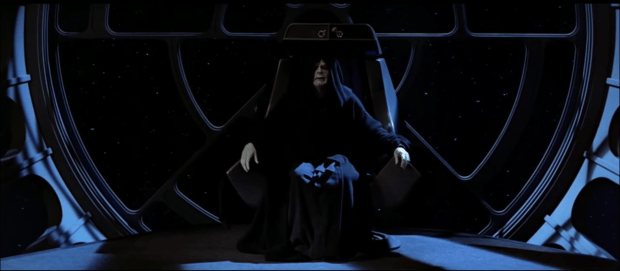 Imagine, if you will, someone came into Palpatine’s throne room and, to make a point, casually killed one of his guys in the red dresses right in front of him.