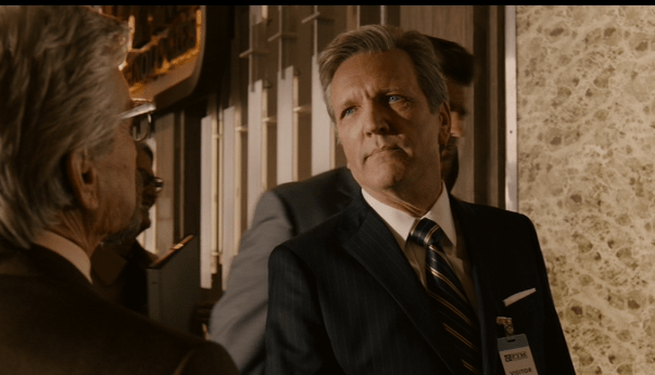 Hank Pym (Michael Douglas, looking thirty years younger thanks to the eldritch voodoo of CGI) storms into a meeting between Howard Stark (John Flattery), Peggy Carter (Hayley Atwell) and Mitchell Carson (Martin Donovan), a new character who we’ve never seen before but who has a bad case of Resting Villain Face. Pym tells Stark that he knows that SHIELD’s been trying to replicate his shrinking serum and is pissed at him for breaking the science bro code. Carson is all “Ha ha! Your wife’s dead!” and Hank punches him in the face because apparently Carson has risen to a senior position in the world’s pre-eminent intelligence agency without understanding how humans work.