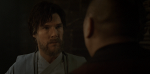 While studying, Strange meets the librarian of Kamar-Taj, a man named Wong played by Benedict…Wong. Huh. How ’bout that?