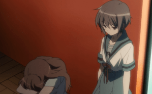 “Right. Because you’re gay and in love with Kyon. Right? I’m right amn’t I? Someone tell me I’m right.”