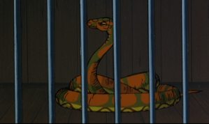 Outside the forest, the unicorn learns that no one can see her true form and everyone just thinks she’s a regular horse. This bothers her no end, because the unicorn is racist as fuck. She gets captured by Mommy Fortuna (Angela Lansbury, hot damn) and put on display in her travelling carnival. Mommy Fortuna is actually a witch who uses her magic to pass off regular animals as mythical creatures. In her menagerie is a “Manticore” (a clapped out lion), a “satyr” (a chimp) and “the Midgard Serpent” (a regular snake). You feel really bad for them, except the snake.