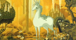 I absolutely get why The Last Unicorn became such a cult classic and I think it’s largely due to timing. The eighties were a real bad time for feature length animation but particularly bad for animation aimed at girls. Disney hadn’t made a princess movie since 1959 and Little Mermaid was seven years away. Something had to fill the void, and that something was barbershop The Last Unicorn.