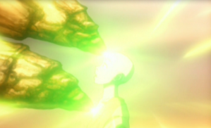 So when people say they hate Sozin’s Comet, this is what they’re talking about (unless those people are actually in the show, in which case they hate Sozin’s Comet because it makes the Fire Nation super powerful, you know what, you knew that, I didn’t have to explain that, I’ll shut up now). Because this is about as blatant a Deus Ex Machina as you’re going to find. Aang is faced with a moral dilemma, to kill Ozai or let him conquer the world, and this gripping moral quandary is resolved by…a giant green monster that we’ve never heard of appearing and giving Aang a power that we’ve never see before to resolve the entire conflict in the most tidy way possible. Now, I don’t hate Sozin’s Comet, far from it. There’s too much here that is awesome for this one bum story note to ruin (even if that story note is, y’know, the resolution of the central conflict). But, because I always like to be constructive in my criticism (shut up, I totally do) I’d like to suggest two ways that I think this ending might have been improved.