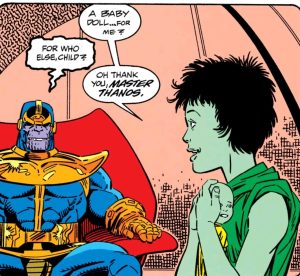 Oh yes. Thanos, despite raising Gamora to be his personal space-ninja assassin, always made sure to celebrate Christmas with her. Oh you don’t believe me? You think I’m making that up? Oh dear, if only I just happened to have a comic panel to hand from thirty years ago proving me right PSYCHE