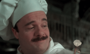 Ernie, who’s a successful chef, has little interest in the house and less in the string factory so he leaves both to Lars and helps himself to a box of his father’s Cuban cigars. Unfortunately, there’s a really, really fake looking CGI cockroach in the box which escapes into the kitchen of his restaurant and finds its way into the meal of the town mayor, who promptly has a heart attack and dies, destroying Ernie’s restaurant business and leaving him penniless.