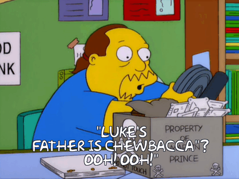 So, while everyone else in the theatre is processing the fairly big news that Palpatine had a son and he was Rey’s father, I’M processing this as well as the absolutely mind-blowing revelation that DARTH VADER HAD A SECOND DAUGHTER. THERE WAS A THIRD SKYWALKER CHILD? HOW? WHAT? WHERE? I THOUGHT LUKE AND LEIA WERE OUR LAST HOPE?!
