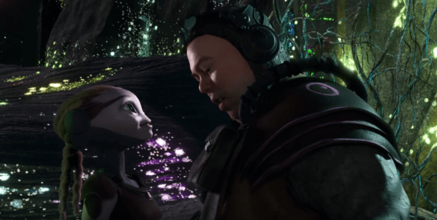 The trio hurry to rescue Milo’s mom, who is named Mom, before sunrise and in doing so they trigger a revolution by showing the picture of the mural across the martian internet which causes all the martians to turn against their scrotum faced mistress. Milo reaches the extractor where Mom is still unconscious and he wakes her up. When she realises she’s on an alien planet she just…guys…I don’t even…she just makes this weird howl like a robot realising it doesn’t have a soul it is the most upsetting thing…