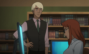 But that works because you absolutely understand why Bruce is attracted to Selina. Here though? Paris is such a transparently odious dirtbag that literally the only thing he has going for him is that he’s conventionally attractive, which means that Barbara comes across as a superficial bimbo for feeling anything for him. Even the belligerent sexual tension feels unearned. Listen to some of their white hot verbal sparring as they fight: