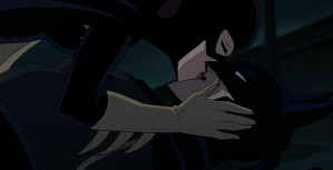 Furious, Barbara throws a punch at Batman and they start fighting and then she knocks him to the ground and then and then…