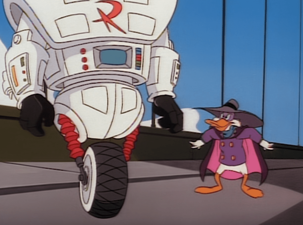 So this Negaduck is Darkwing Duck from an evil “Negaverse” which would only be introduced 17 episodes after this one aired. Oh, and I said this Negaduck because there was also a Negaduck introduced in the episode “Negaduck” who was the result of Darkwing Duck being hit by a beam by Megavolt that split him into good and evil versions. And, despite that Negaduck being considered the “first” Negaduck the episode where that happens is actually the last one in broadcast order.