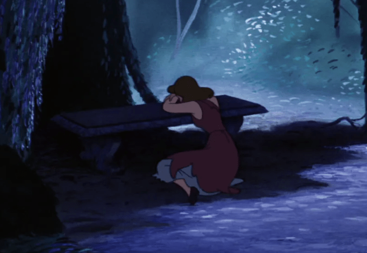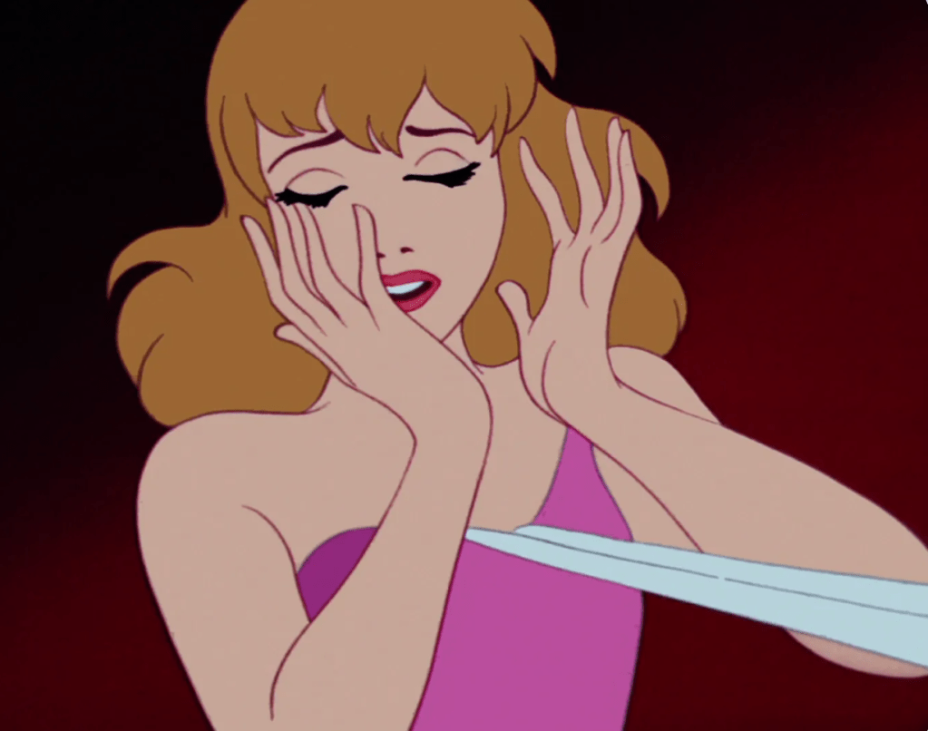 So suddenly she goes from weary resignation to euphoric joy. In gratitude for her kindness to them, her friends have worked through the night to ensure that yes, she shall go to the ball. Yes, she shall have one damn night of happiness. Yes, for once, she gets to win. So when you go from that euphoric height to THIS: