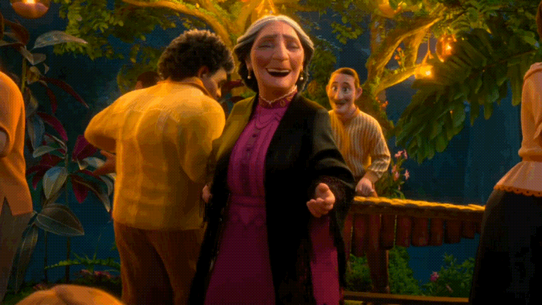 More or less completely irrelevant to the plot. Hardly any screentime. But damn, you’d miss him, wouldn’t you? Because every time he’s on screen he just lights it up and you actually learn a lot from him and his relationships with the other family members through little tiny details. Abuela is the most emotionally guarded, reserved, almost austere character in the whole movie. So when you see her dancing with Felix…