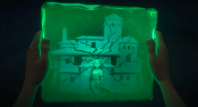 Each of the Magical Madrigals have their own pocket universe in their room, but since he left, Bruno’s has started to collapse and decay. In the ruins, Mirabel finds glowing green shards that are the remains of Bruno’s vision and gathers them up before the whole place collapses in.