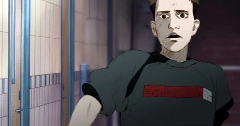 The animation is certainly striking and makes the short stand out, even in the incredibly eclectic mix of styles that makes up the anthology. I do have criticisms though. Mostly, that the mouth animation is terrible. I don’t mean bad lip synching. I mean these characters are flapping their lips like fish on the floor of a boat. There’s one scene where Dan’s trainer is begging with him not to run and all I could think was: