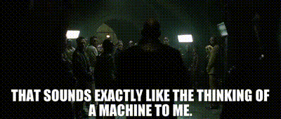 He revealed in Matrix Revolutions that Zion is also just another method of control created by the machines, meaning that Zion’s historical records were possibly created by the Machines as well. And if we assume the Wachowskis original concept of a neural link is true, I think this explains things quite well. The Machines want the humans to believe that they need their bodies as a power source because they don’t want to admit the truth; that human brains are actually superior to computers and that the Machines are actually now effectively human hybrids, artificial programmes running on organic human hardware (think how Agent Smith would react to the idea). And they lied about Operation Dark Storm because it justifies the creation of the Matrix. “Of course we plugged you into the Matrix, humans. You left us no choice. You destroyed our energy source and so we need your warm bodies which generate energy like a nuclear furnace apparently”. But what if that’s not the reason, if the Machines needed humanity because, on their own, they just couldn’t surpass their creators? What if they needed us to be the best version of themselves?