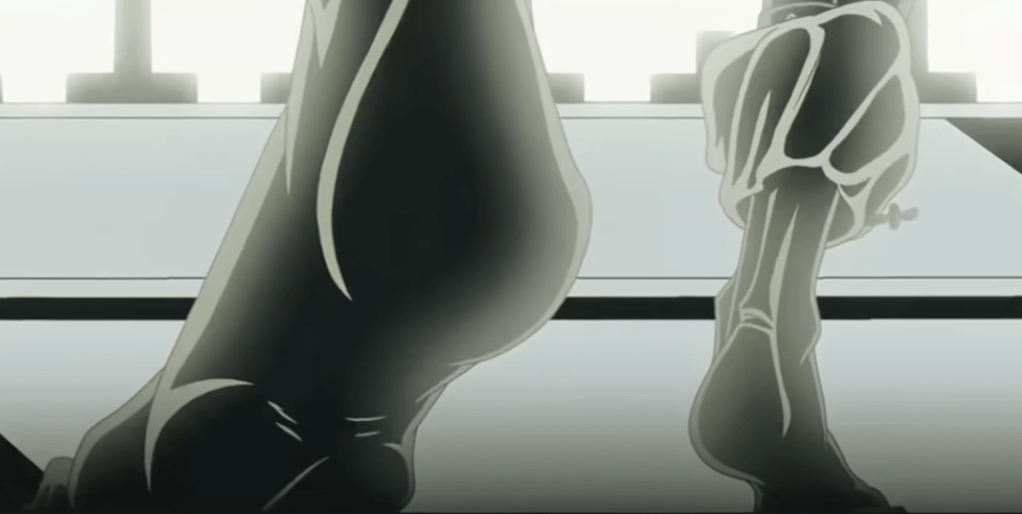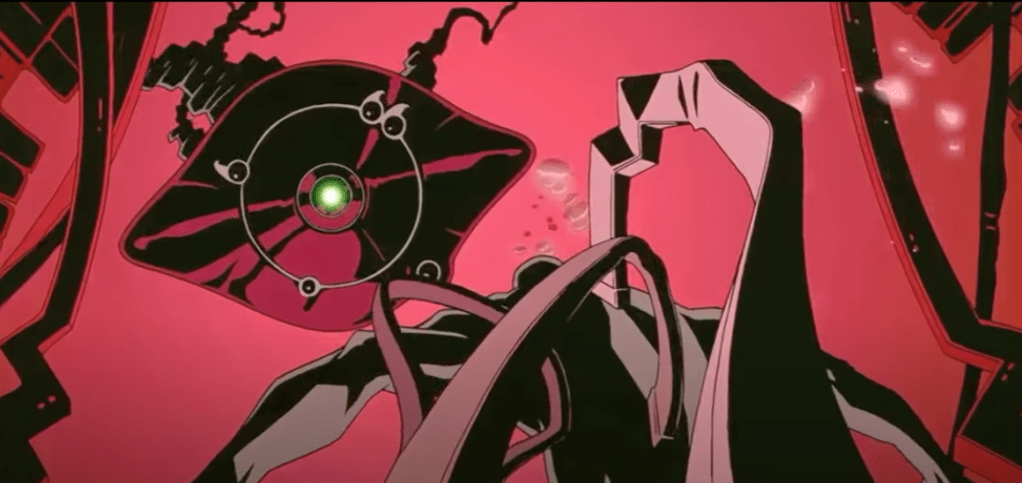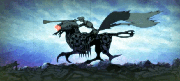 If Part 1 drew on history, Part 2 draws on scripture. The depiction of the Human Machine War is overflowing with apocalyptic imagery. Horsemen blow trumpets, plagues of darkness descend and scenes of utter torment and damnation abound. It’s honestly one of the most effective and chilling depictions of the horror of war and the idea of an entire world slipping into hell that I’ve ever seen. As with Part 1, Mahiro Maeda uses montage and judicious editing to pack an entire novel’s worth of lore and story into a few scant minutes. It’s visceral, pulse pounding stuff, beautiful in the purity of horror that it evokes.