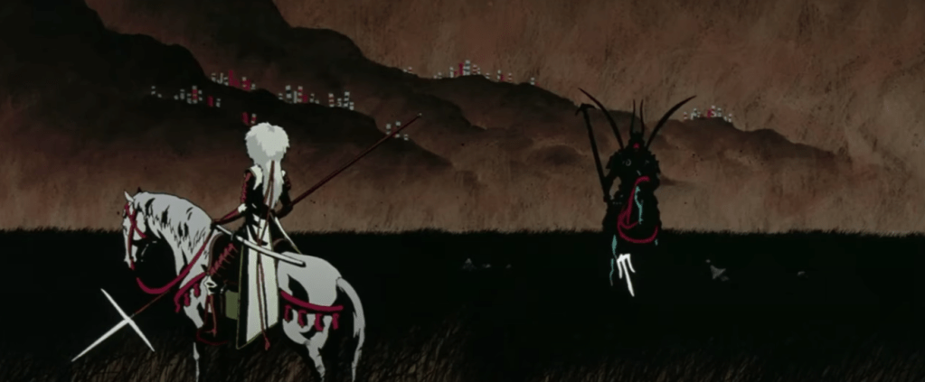 A woman named Cis is training in a samurai themed simulation. She effortlessly defeats some cavalry and finds herself face to face with this Darth Vader lookin’ motherfucker…