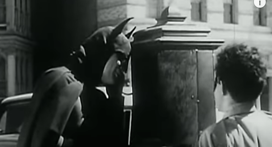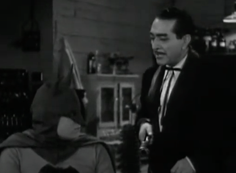 That’s all well and good, but he plays Batman more or less in the exact same register. For instance, when calling “Captain Arnold” (the serial doesn’t use Commissioner Gordon for some reason) to tell him that he’s left some incapacitated hoods to be picked up he says “I’ve got a nice little package for you”.
