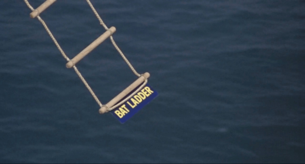 This of course leads to the best line in the movie, and indeed, in fiction, with the caped crusader ordering his young ward to provide him with a bat-themed aerosol specifically designed for the deterrence of carcharadons. And Adam West didn’t get an Academy Award for this because the Oscars are bullshit. In the nick of time, he’s able to repel the shark and it explodes.
