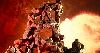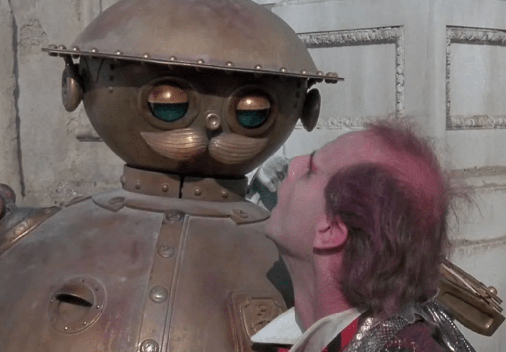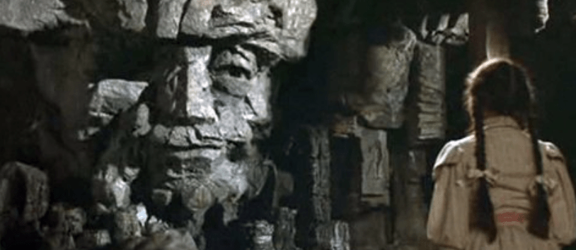 The Gump flies them out of the tower and they make a beeline for the Nome King’s mountain. The Nome King is played by Nicol Williamson, who also plays Doctor Whorley and is realised through…well, that’s complicated but for starters he’s a Claymation face made of rock.