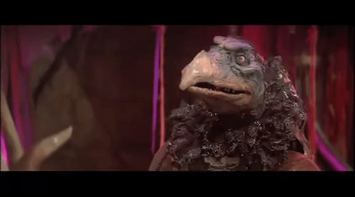 The problem is, Henson makes the same mistake that every novice fantasy writer or game DM makes; prioritising lore over story. If Lord of the Rings is Complexity resting on Simplicity, Dark Crystal is Simplicity resting on Complexity. The main story is as simple as Frodo Must Destroy The One Ring; Jen Must Heal the Crystal. Jen’s quest (and Jen himself for that matter) seems to be the element of the movie that Henson is least interested in, instead drowning us in Podlings and Skeksis and uRu and Gelflings and Conjunctions and more and more lore.