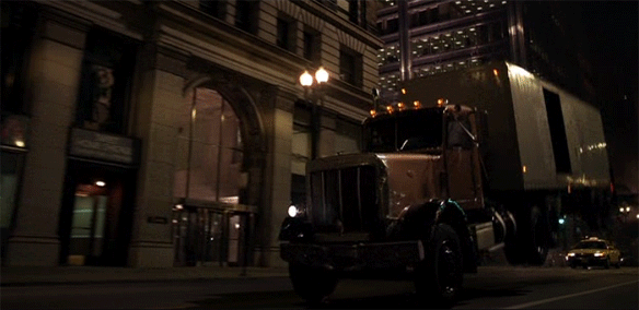 Harvey gets transported across town to jail but the convey is attacked by the Joker’s goons in a scene that culminates in one of the most spectacular vehicle stunts of the 21st century.