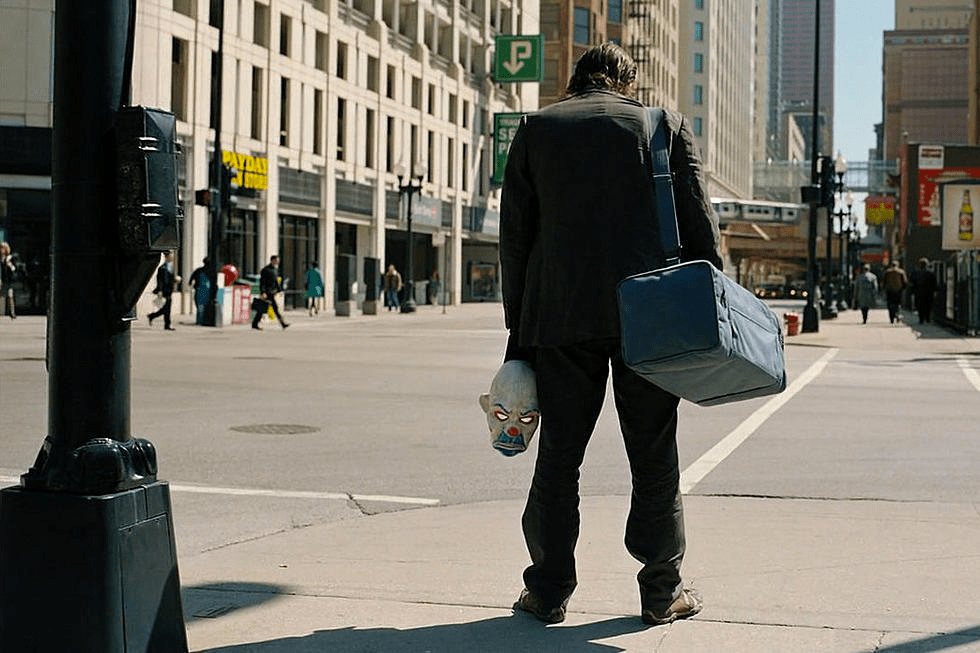 Also, and I can’t believe I didn’t realise this before, but I always thought Joker then kills the bank manager. But instead, he puts a grenade in his mouth and pulls the pin as he drives off, only for the grenade to give off harmless smoke. One last joke.