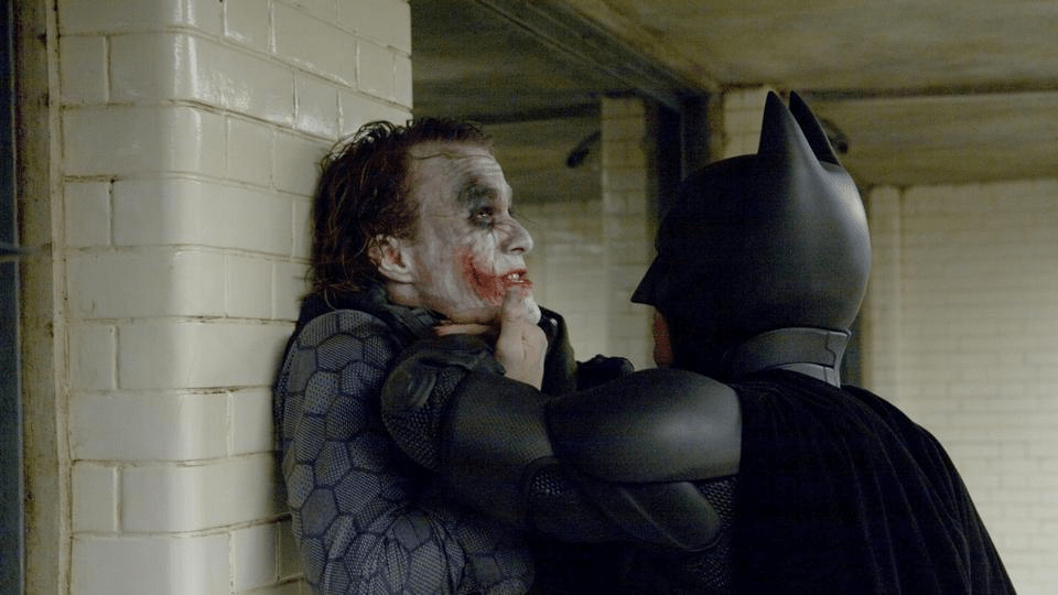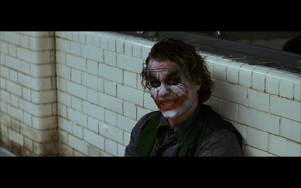 The Joker, for the first time, is genuinely confused. He just can’t fathom that his worldview might be wrong. Batman stops him from blowing up the ships and leaves him dangling in the air. He tells Joker that he’s lost, but Joker counters that once Gotham sees what’s become of their saviour Harvey Dent, they’ll be well on their way to becoming like him. The Joker then muses that he and Batman will never be able to kill each other and that they’re going to be doing this forever.