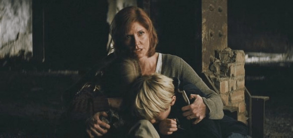 When we first see Ledger’s Joker he’s waiting by the side of the road, perfectly, utterly still. Not simply standing but almost…offline. Like a character in a joke, he doesn’t even exist until the joke is told. He gets picked up in a car by two other hoods wearing clown masks and they head off to the bank. Watching it again and knowing the twist makes the scene even better and even more darkly funny. I could gush all day about all the wonderful little details, like how the Joker is wearing a mask based on one used in an episode from, of all things, the sixties show. What we see in this sequence is the World According to Joker. No one can be trusted. Nothing is as it seems. Everything is a lie and everyone is being lied to, including us, the audience. As the clown robbers kill each other one after the other the bank manager (William Fichtner) comes out of his office blasting a shot gun because it turns out this is an eeeevil bank run by criminals.