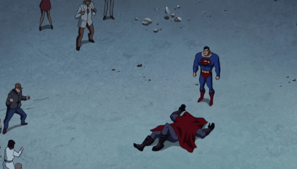 Not surprisingly, what with this being a very faithful adaptation of a great comic book story that even has the original writer on board, this movie doesn’t put a foot wrong with Superman on the writing level. George Newbern’s vocal performance is…mixed. But when he gets to unhinged, “no-fucks left to give” Superman he’s utterly chilling.