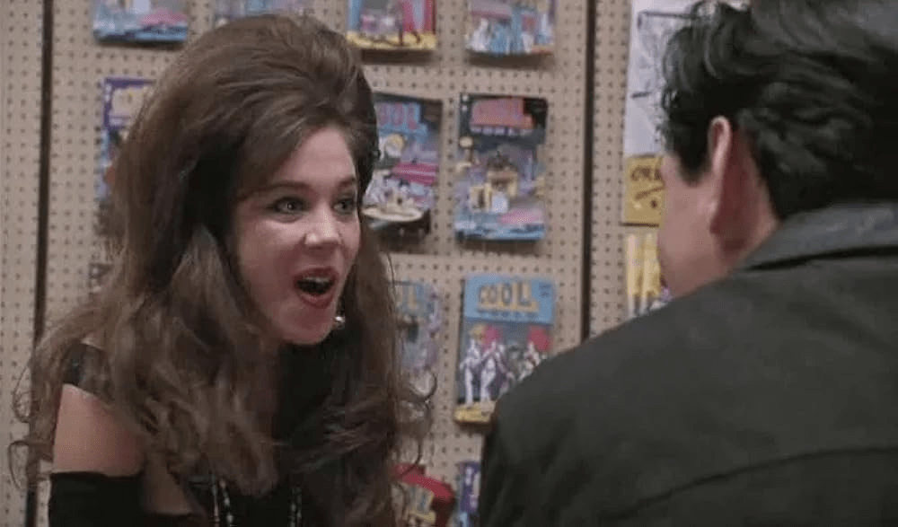 Alright, so Jack and Holli return to the real world and their is so explosive that it draws the attention of two of Jack’s neighbours, Isabella and her daughter Jennifer, who just walk into his house to see if he’s okay. He assures them he is while Holli acts like she’s suddenly regressed to being a three year old. This whole scene is basically just we can introduce Jennifer who’ll be playing the role of audience surrogate who gets all the shit the movie pulls out of its ass to try and force a resolution at the end. Which is weird to me because this so obviously should be the comic book store cashier from before in this role. She’s introduced earlier, she knows Cool World and she even asks Jack out on a date. He turns her down in the movie but having her involved in his life would have made her a much more organic choice to show up again in the final act. Well, whatever.