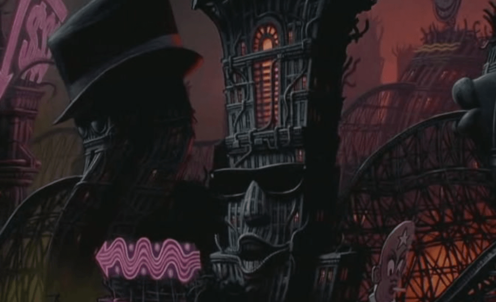 Back in Cool World, Frank discovers that his partner has been seemingly killed and realises that it’s time to return to the real world to stop Holli and get revenge. Remember when I said that the backgrounds, while certainly striking, were actually to the detriment of the story? Here’s what I meant by that. Frank’s whole character arc is that, after the death of his mother, he’s basically been hiding in Cool World rather than face the hardships of real life. The problem is…I cannot buy anyone wanting to stay in Cool Word for eternity. I can’t imagine anyone wanting to stay in Cool World for a stopover flight. Because Cool World is hell. Look at those backgrounds again. It looks like Gotham City’s mother got fucked by Hieronymous Bosch who then went out for cigarettes and never came home. 99.9999% of ever character we see in this place is a demonic sex-and-violence crazed gremlin. And Frank seems to know it. Pitt doesn’t crack a single solitary smile all the time we see him here. He seems to hate the place almost as much as I do. So, other than Lonnie, I can’t think of a single reason why he wouldn’t want to return to the real world and I feel no sense of tragedy when he has to give this nightmare up.