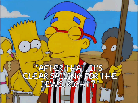 The lean years come and soon everyone is coming to Egypt for grain. Including Joseph’s asshole brothers. Joseph, understandably, is not quite ready to forgive and forget. As none of his brothers recognise him, he refuses to sell them grain and accuses them of being spies. They tell him everything about them, including that Joseph now has a brother who he’s never met, named Benjamin. Joseph imprisons one of the brothers, Simeon, and tells them to prove their story is true by bringing him Benjamin. The brothers are confused not understanding why Benjamin even matters. But of course, in this life, it’s ALL about the Benjamins.