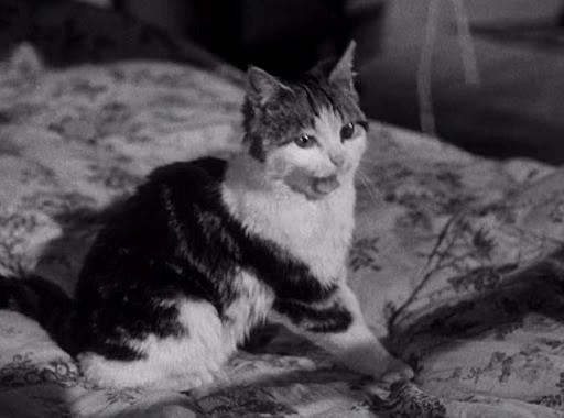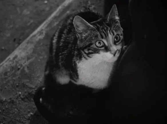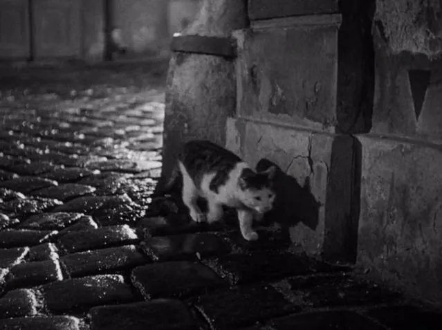 Holly gets proper messy drunk and shows up at Anna’s apartment with a bouquet of flowers to say goodbye. He tries playing with Anna’s cat but gets completely rejected which is probably symbolism for something. Anna says that the cat only ever liked Harry (okay, that’s definitely symbolism) and the cat then exits through the window and goes out into the street where it starts running up against a mysterious figure watching Anna’s apartment from the shadows. And I can’t believe it’s taken me THIS LONG to realise that this sequence uses three obviously different cats.