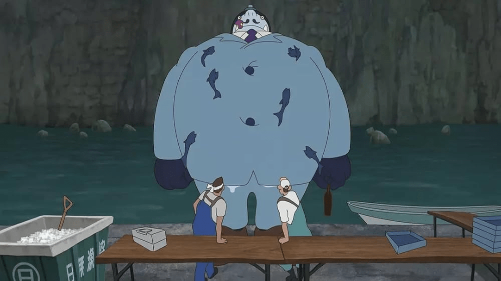 Meanwhile, Lu’s father, who is a big shark man in a suit, hears her cries of fear and comes to rescue her, almost bursting alive in the sunlight.