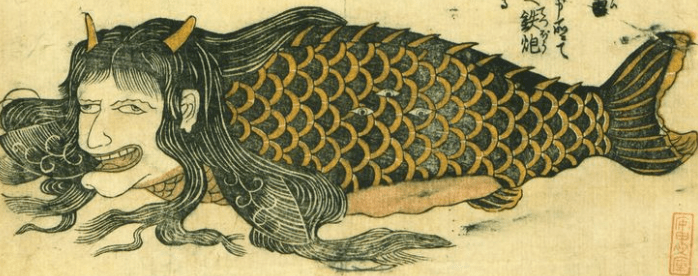 See, historically, Hinashi has had beef with the Ningyo, half-human half fish creatures that, like the merfolk of Western folklore, seduce and enchant sailors to their doom. Unlike the merfolk of Western folklore, we must assume they have great personalities.