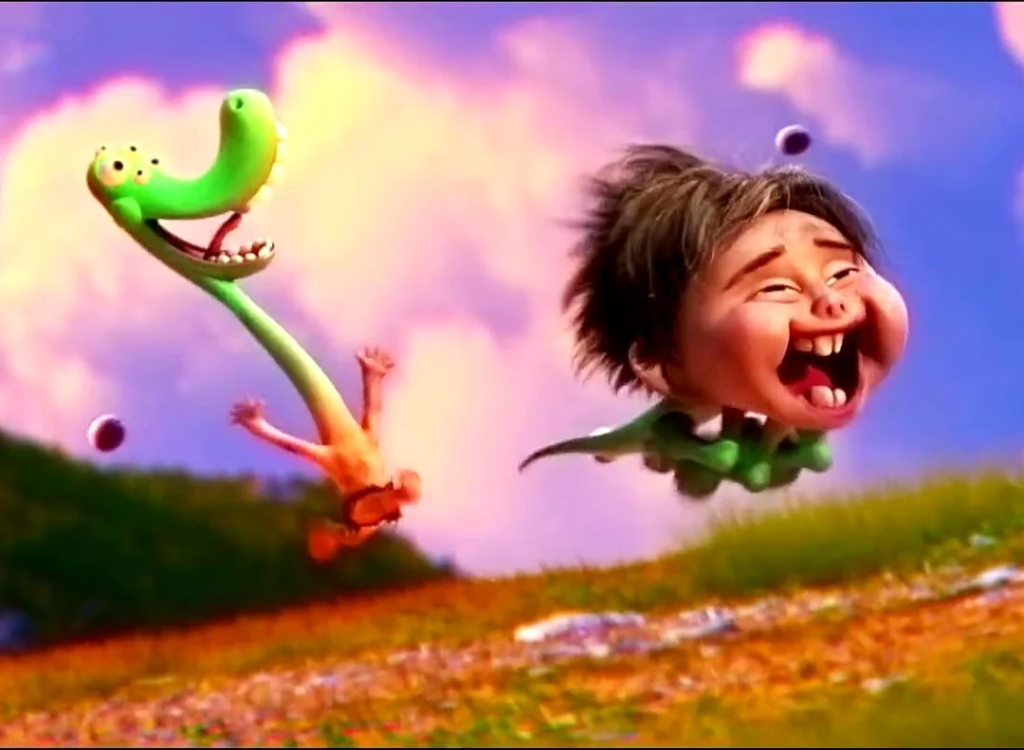 Alright, Arlo chases Spot into the forest, they both fall in a river, they get swept downstream and…that’s it, that’s all the recap you’re getting because you bloody know what happens next. You know Arlo will overcome his fear and grow closer with Spot and they’ll work together and overcome their obstacles together and blah blah blah. You could probably predict every story beat from this point to the credits. Okay, fine, you probably couldn’t predict the scene where they eat rotting fruit and proceed to trip absolute balls.