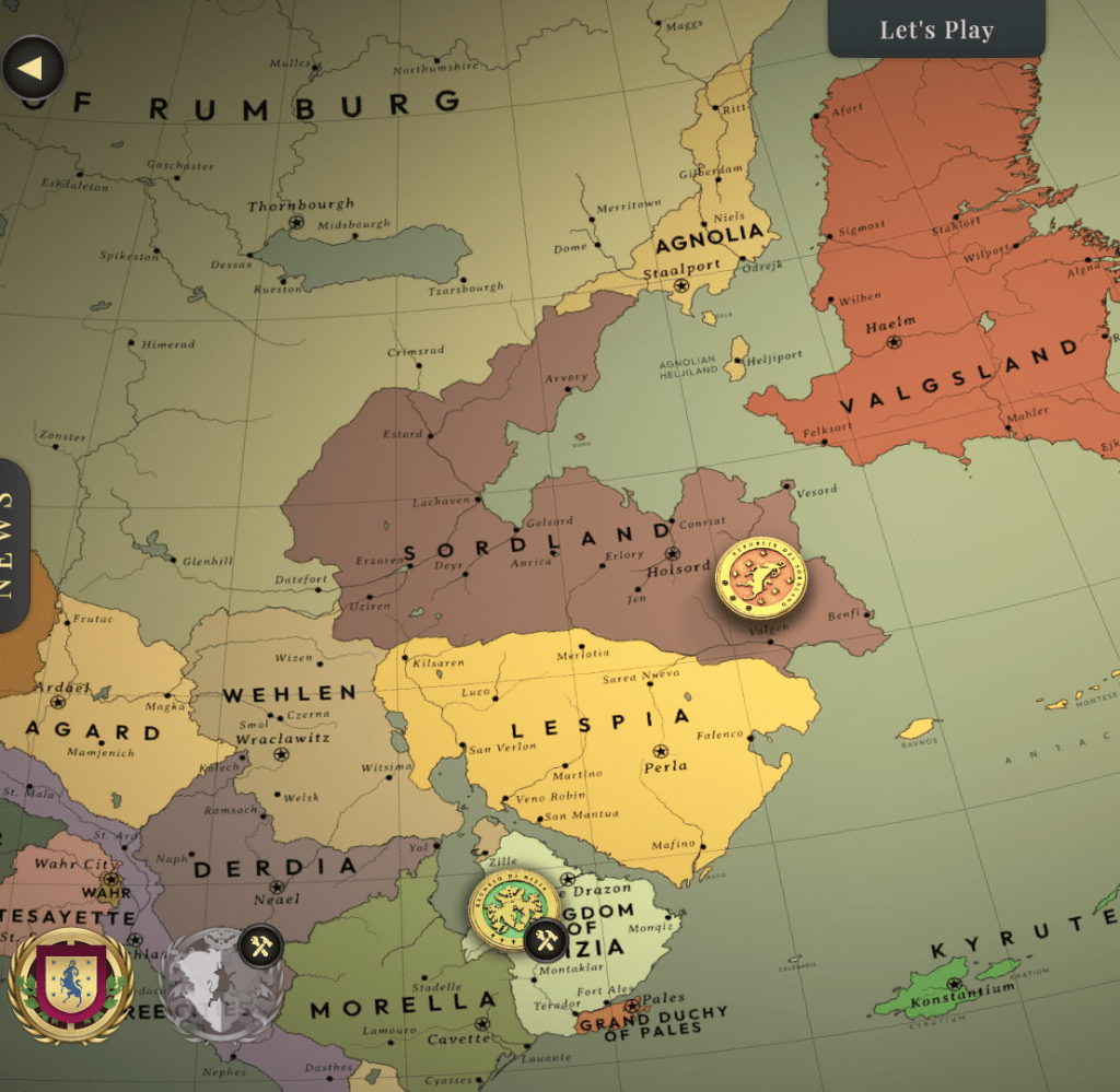 Some nations and institutions in the game have close paralells to our own world. Arcasia is a capitalist superpower and the founding member of the military alliance A.T.O. which stands in opposition to the communist superpower United Contana. All pretty straightforward, and if you just want to think of them as the own-brand USA, Nato and USSR that’s a perfectly decent schema for understanding them and their relationships. But, dig into their history and you will find many ways in which they differ from their real world counterparts. Complicating matters is G.R.A.C.E., a third superpower that espouses neither capitalism or communism but monarchy, which is a fascinating addition.