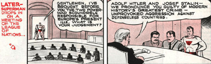 This is not a new problem. In 1940, Siegel and Schuster wrote a non-canon Superman story for Look magazine called “How Superman would End the War”, where Supes abducts Hitler and Stalin and drags them before a tribunal to stand trial.