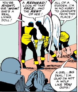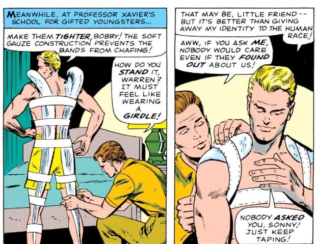 Likewise, I also claimed that the much later decision to make Iceman gay was a blatant retcon that directly contradicted the character’s established history. And while we do definitely see Bobby dating women in these early issues…